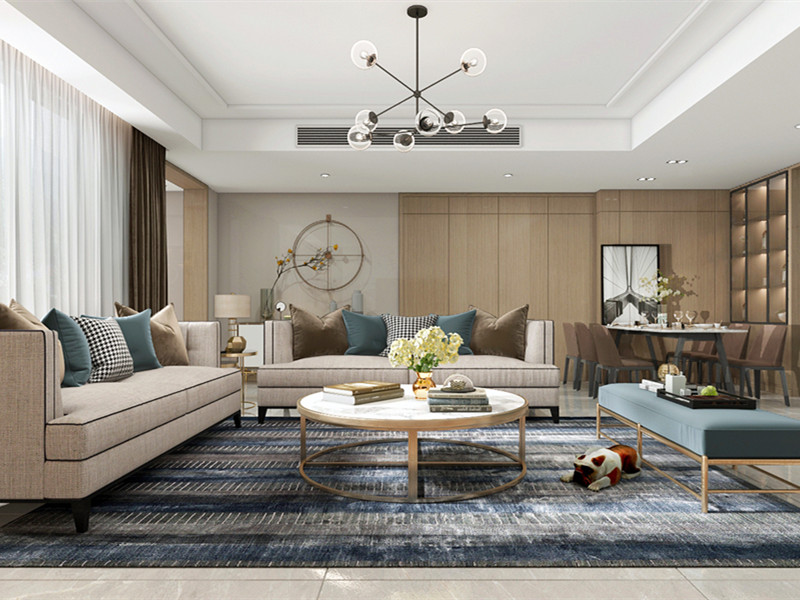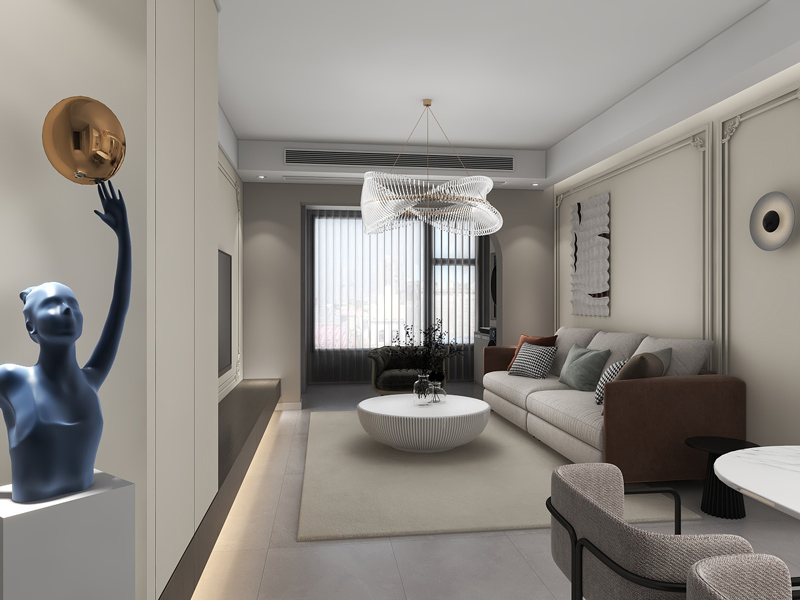 本案例风格定位于现代简约风,整体空间通过软装家具的比例缩小,让视觉呈现更宽敞通透,打造实用的生活空间。