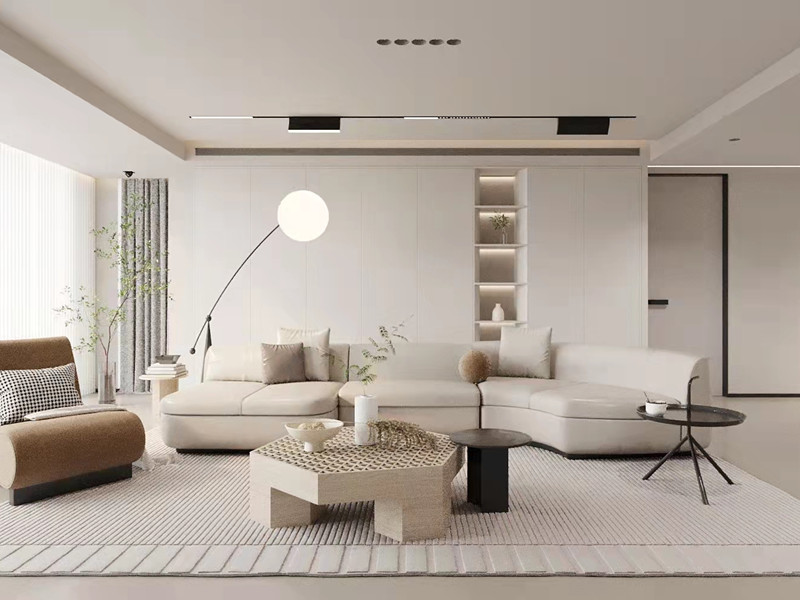 本案定位于现代风格,以浅色调装饰布局室内空间,并结合多元化的灯光布局,营造简雅时尚的家居氛围,生活实用性与设计美学兼具。