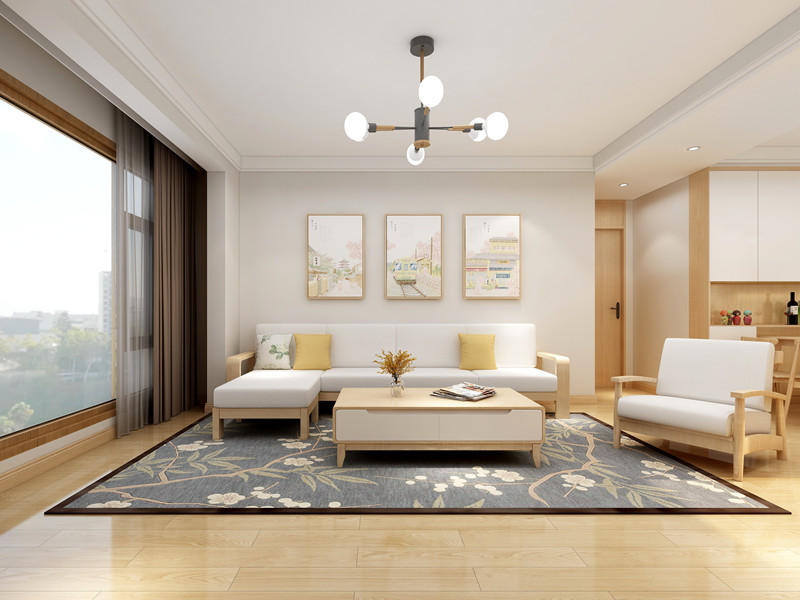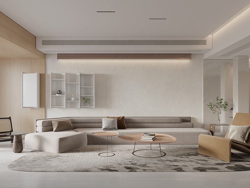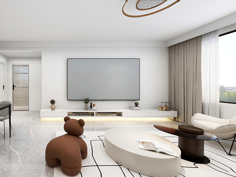 本案定位于日式风格,以白色为空间色彩基调,融入大量原木色系的木材装饰,并结合光影和绿植的点缀,呈现彰显满满大自然气息的生活氛围。