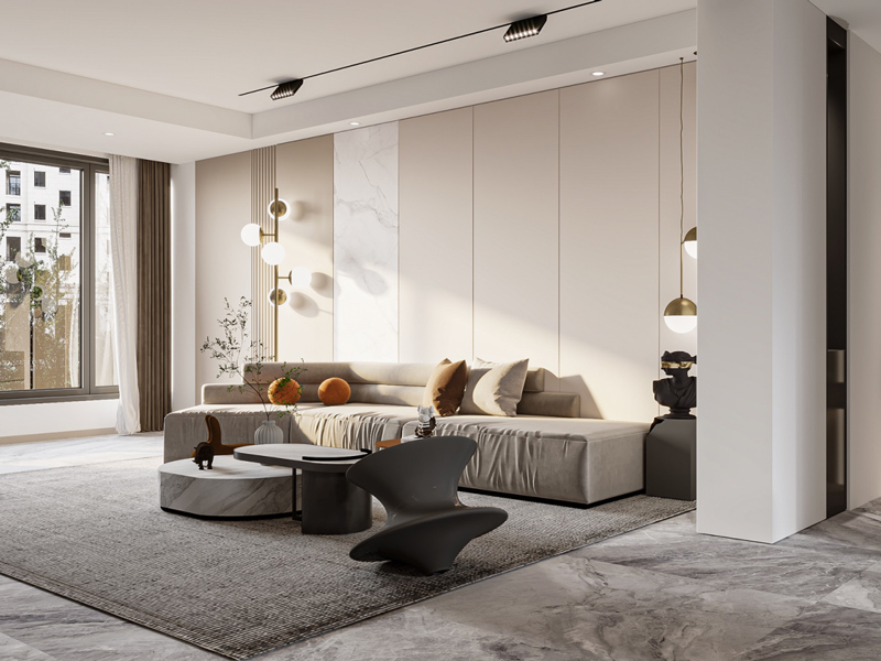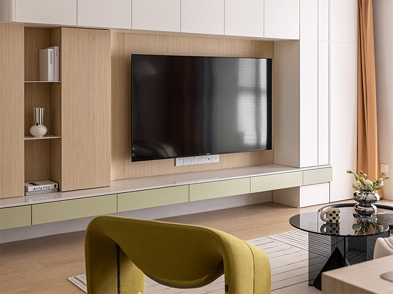 本案定位于现代风格,既注重对空间实用功能的呈现,又诠释对优雅品质生活的追求。以白和浅灰为主色调,搭配木饰面、低调质感软饰等,营造温馨且简单的生活氛围。