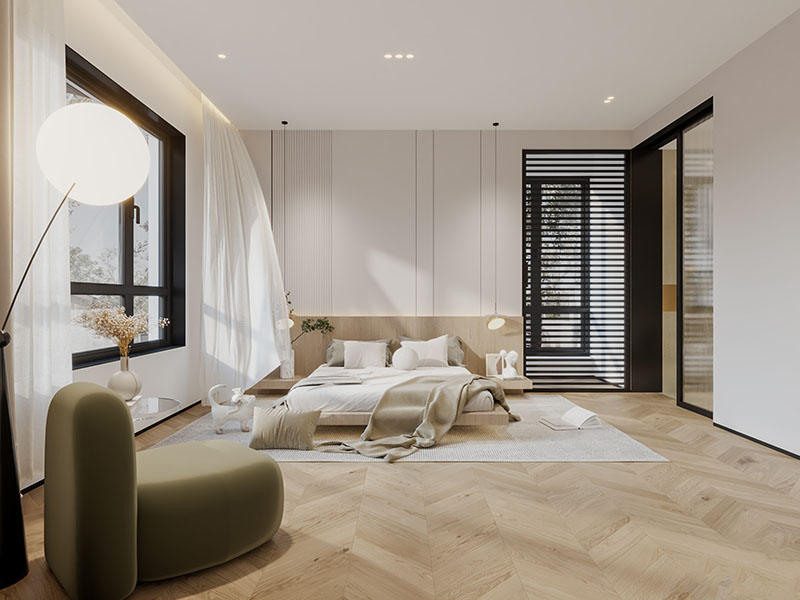本案例风格定位于简约原木风,让整体避免冷清,呈现出更自然温馨的空间效果。