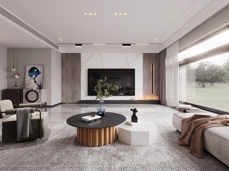 本案定位于现代风格,注重对居室空间功能性的呈现,对空间布局、色彩、材料和光影等进行适合的简化处理,用简约诠释品质生活。