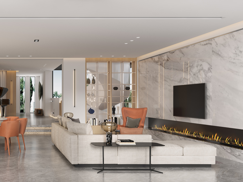 精致柔软的软装家具与大理石基底搭配,使得细节处更显品质感,提亮了整个空间的调性,典雅错落有致。