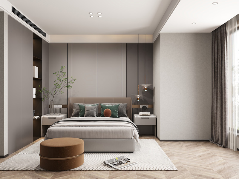 本案例色调以灰色为主,给人静谧的空间氛围,融入装饰摆件,避免沉重,在视觉上更加有质感。