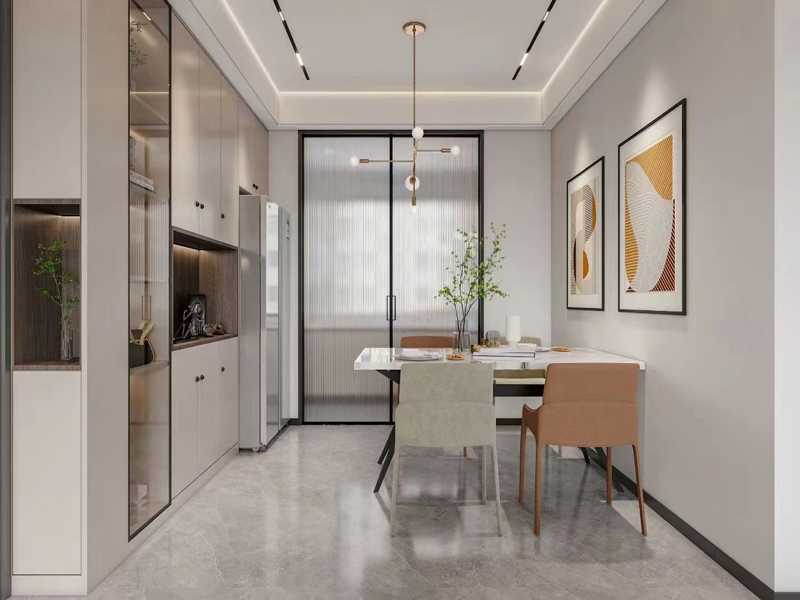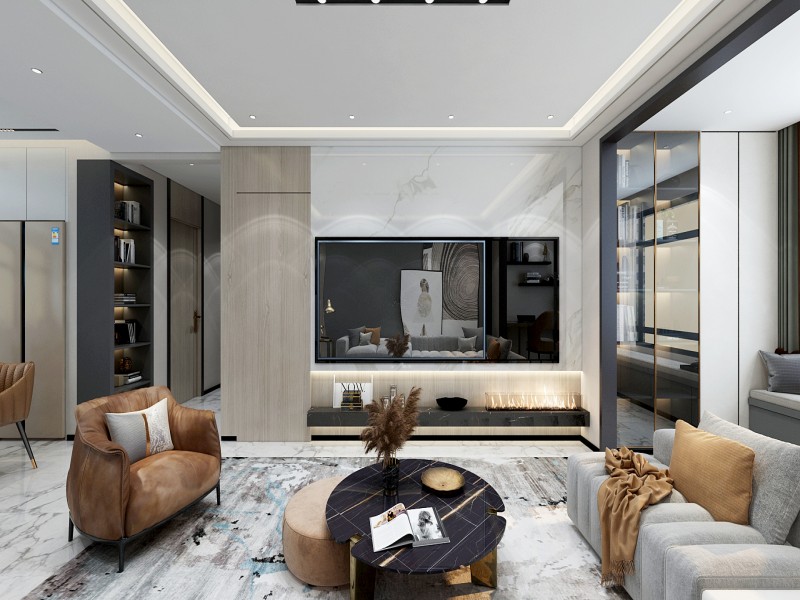 本案例风格定位于现代简约风,采用冷调的色调选择,为空间带来雅致之感,材质硬朗简洁,视觉呈现更大气。