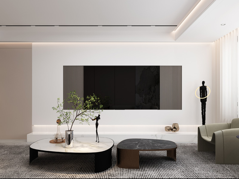 本案例风格定位于现代简约风,打造线条结构的流动型,时尚大气的开放式整体布局,增进生活交流,流畅简洁自然,时尚感十足。