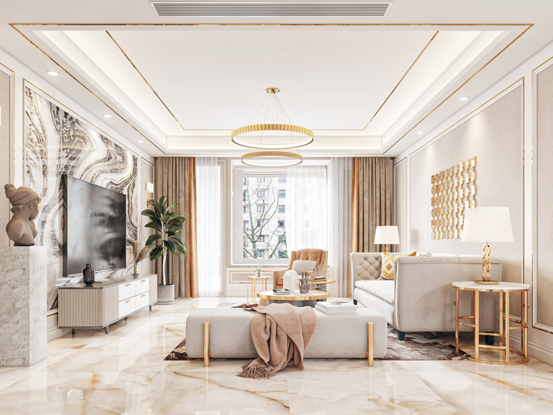 金属元素可以用来打造出具有轻奢风格的居住空间,饰品、家具等选用带有金属细节的,可以营造出高贵典雅的气息。