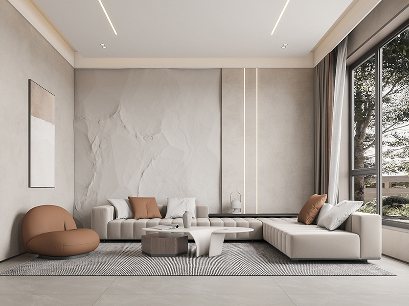 本案例风格定位于现代简约风,力求打造深居简出的舒适环境,让空间充满时尚感。