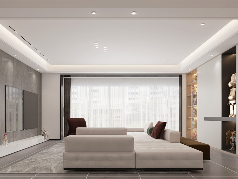 本案定位于意式极简风格,采用素雅的色彩搭配简洁流畅的线条,并融入简洁时尚的家具和软饰,结合无主灯设计,呈现美学与生活的平衡之美。