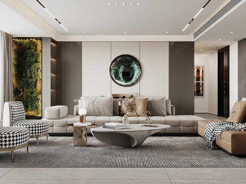 本案定位于现代轻奢风格,采用简洁硬装设计,配以彰显满满轻奢质感的家居软饰,并结合光影艺术,诠释对优雅品质生活的追求。