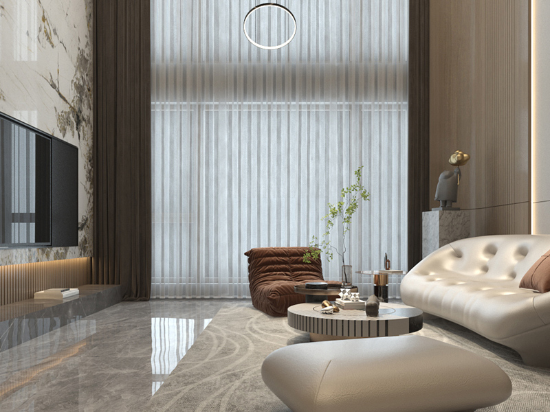 将色彩和选材巧妙结合,既呈现视觉上的简约整洁,又彰显对品质生活的追求。融入光影艺术和绿植做点缀,打造简雅惬意的简约风家居。