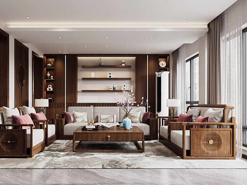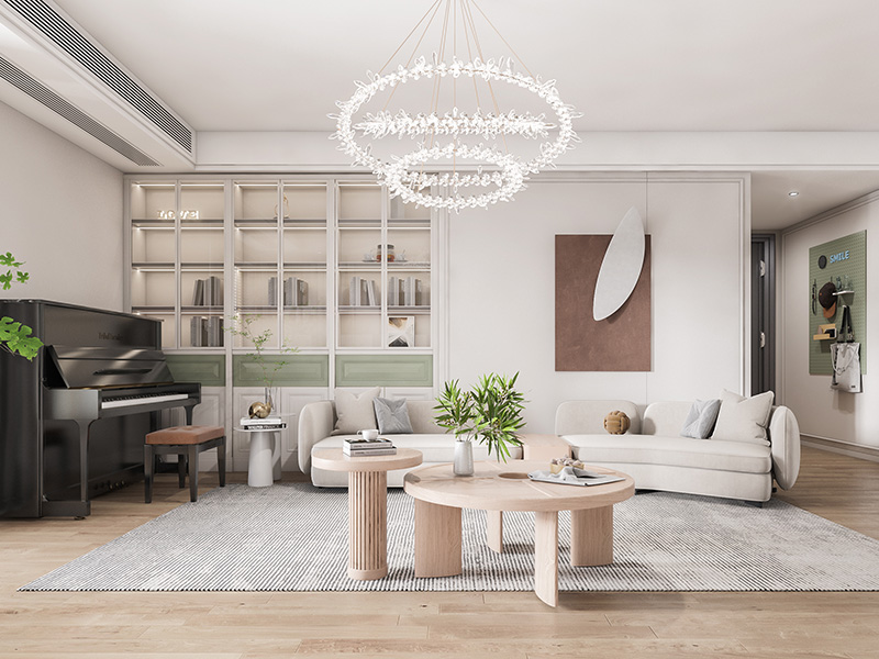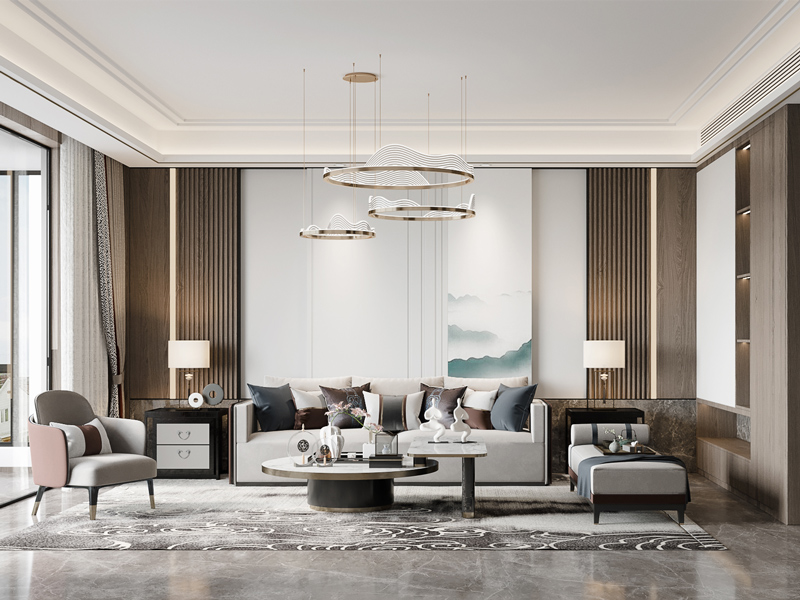 以素雅色彩做空间色彩基调,融入大量木材和中式元素,赋予空间传统文化底蕴。并结合无主灯设计等,呈现传统与现代的碰撞,打造功能性与艺术美学兼具的新中式风格家居。