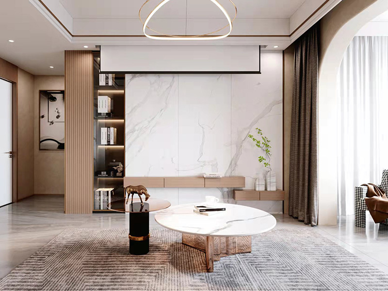 本案例风格定位于新中式,整体布局十分协调,韵味悠长,通过对材质、造型、灯光等细节的着重拿捏在视觉上的冲击感,营造一步一景,具有乐趣与品质感,舒适感的居住环境。