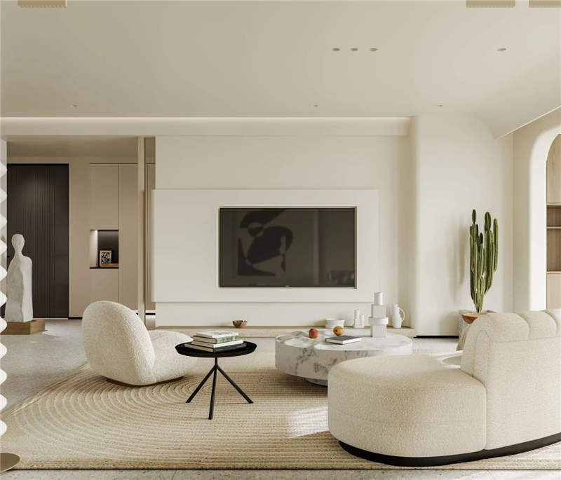 本案是一套145㎡的简约风三居室,全屋采用奶色系作主色调,呈现出一个温馨、治愈的居住空间。弧形设计贯穿各个功能区,丰富了空间的层次感,搭配原木色家具软装,居住在里面让人倍感舒适。