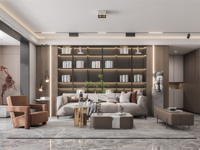 本案例风格定位于现代简约风,以灰色调为主,融入精致的装饰摆件,给人静谧的空间氛围。