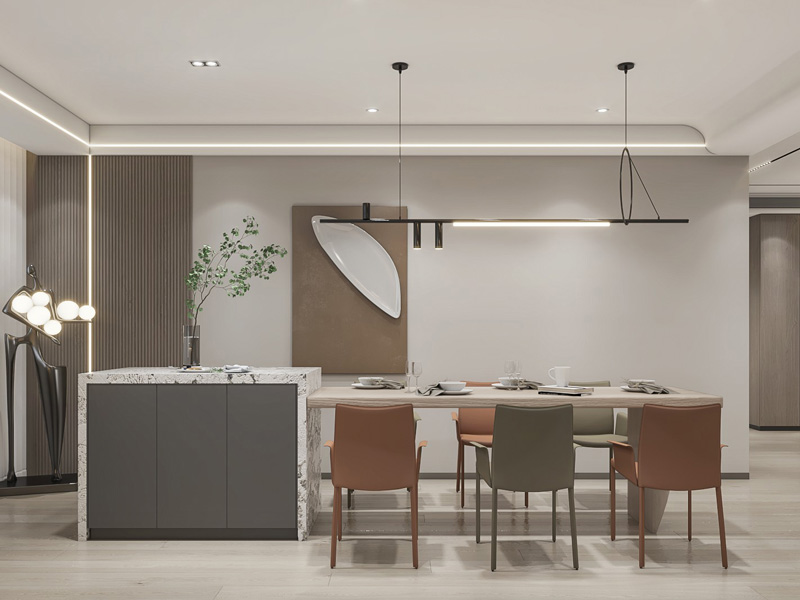 餐厅区域的设计应该考虑到日常生活使用的需求,为就餐提供一个舒适、便利且美观的环境。