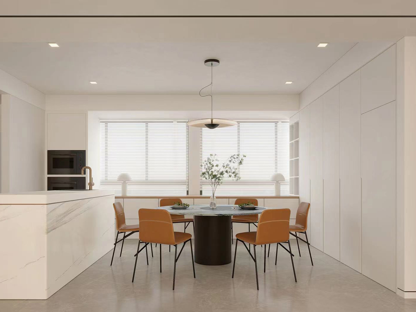 本案例风格定位于现代简约风,营造简洁优雅的温柔感空间氛围,摒弃繁杂多余的装饰,提升空间实用性。