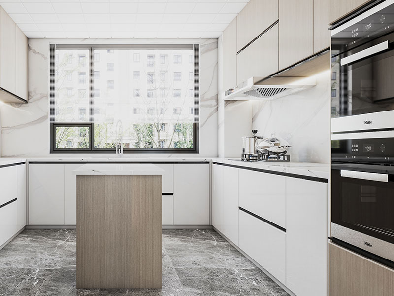 采用岛型设计的开放式厨房,不只可以满足烹饪需求,还可以让厨房发展成社交空间,方便家人、好友的交流与互动,可以说是一种社交厨房。