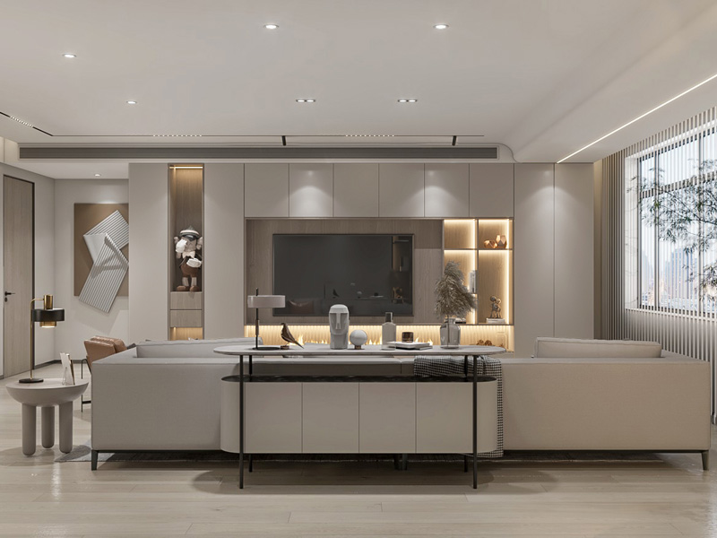 本案定义为现代风格,既注重空间的储物能力等实用性能,又追求对优雅品质生活的呈现。以黑白灰为空间主色调,搭配暖色调软装等,呈现时尚惬意的现代家居。