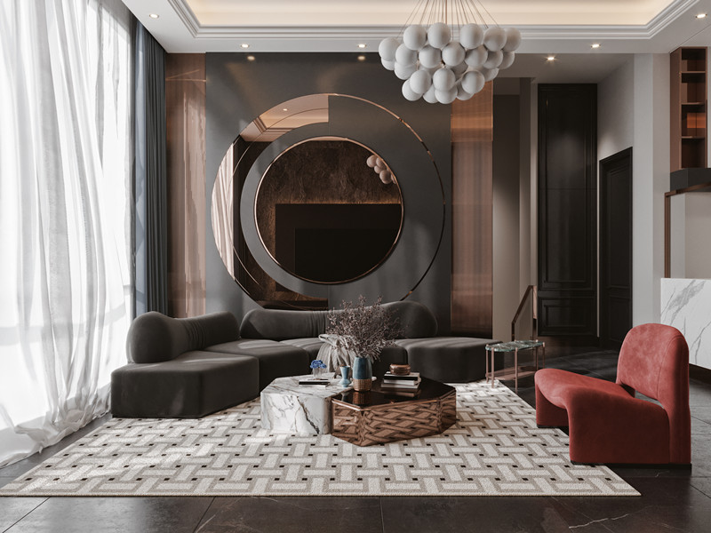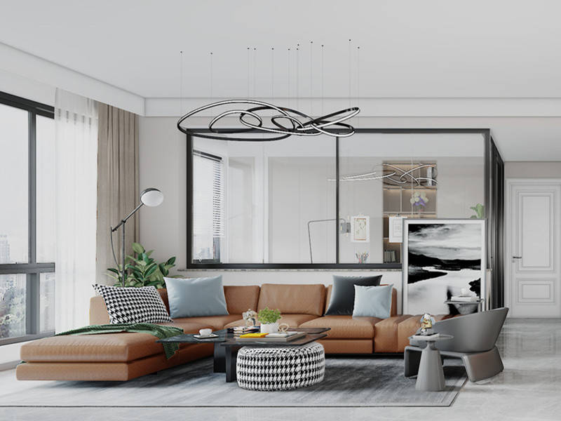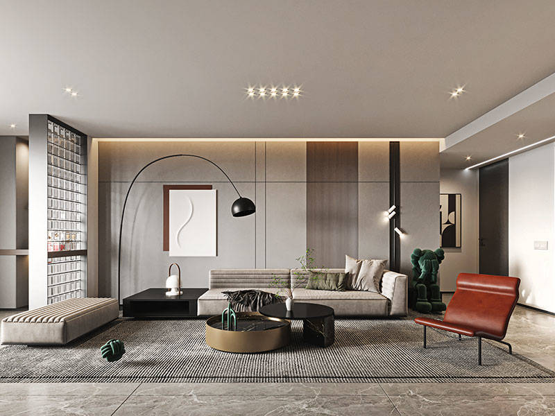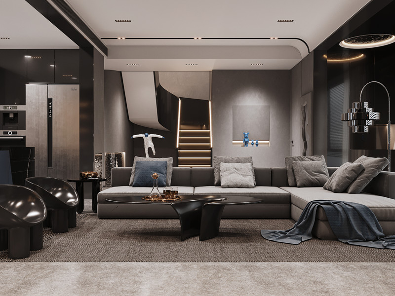 本案定位于现代风格,以黑白灰为家居空间主色调,并结合玻璃、木材装饰和光影艺术等,呈现简雅时尚的现代家居生活。
