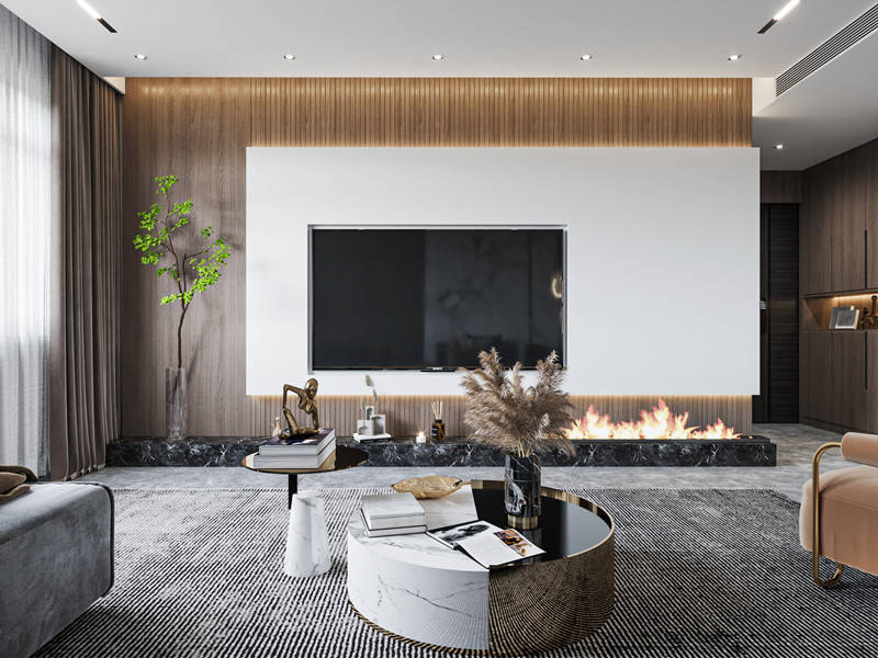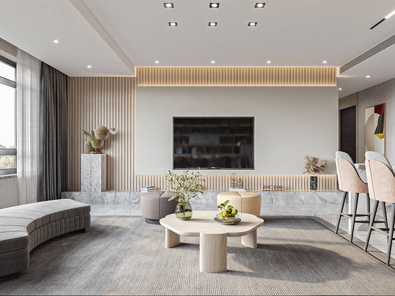 本案定位于现代简约风格,注重对家居空间实用舒适的呈现,围绕生活功能进行风格设计等,巧用石与木的碰撞,结合光影艺术,彰显家居的惬意感。