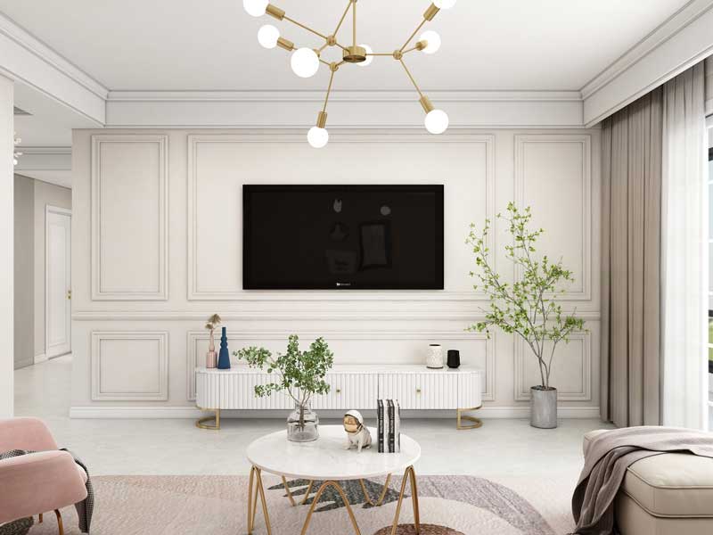 本案定位于简约风格,既注重对空间实用功能的呈现,也注重对家居舒适惬意氛围的营造,将开放式布局与无主灯设计相结合,呈现简雅时尚居室环境。