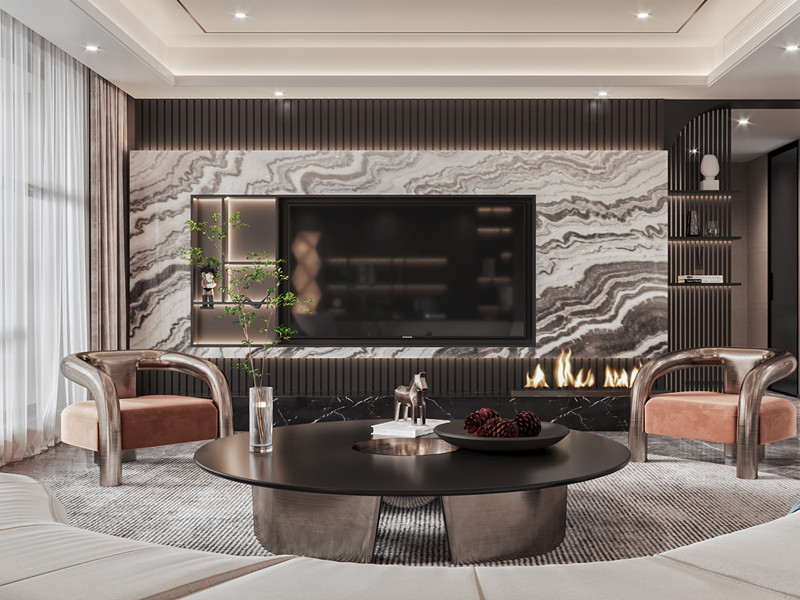 轻奢风格整体不会过分张扬与过度的奢华,以低调的优雅与舒适的设计理念展现家居之美。本案运用现代轻奢风来装饰设计,展现优雅而不乏味的生活态度,以干净利落的线条调动起空间的互动与生活气息,却也不会忽视展现优雅的家居氛围感。