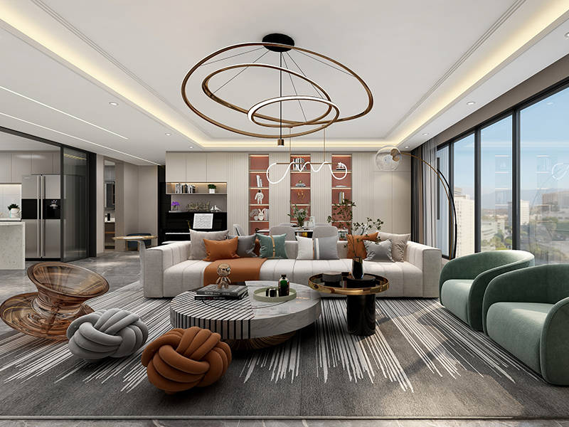 本案定位于现代简约风格,以人为本,围绕生活功能进行家居设计,注重空间的运用、灯光营造室内气氛,呈现美好居室环境。