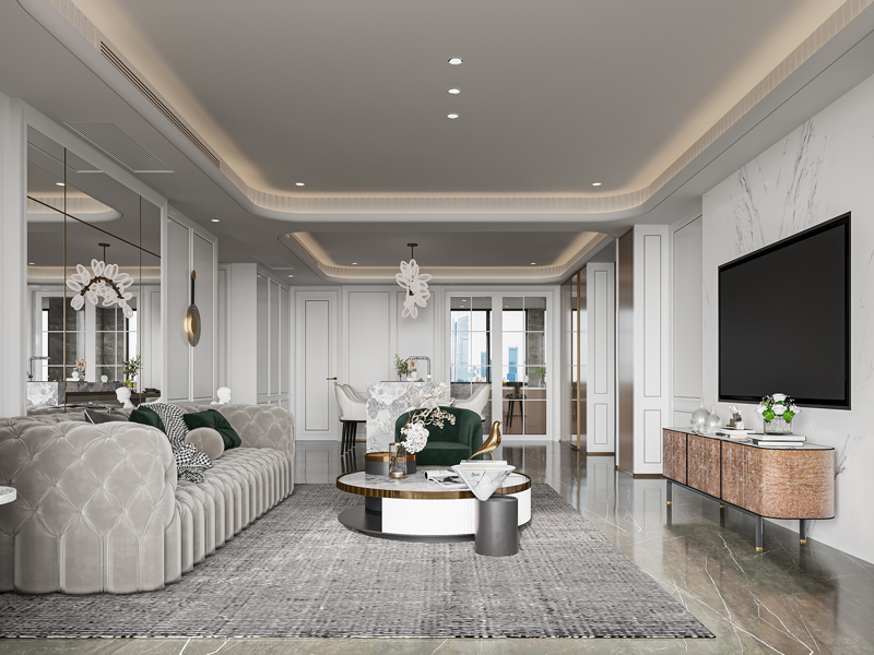 本案例风格定位于法式轻奢风,使奢华简洁化,让细节处散发优雅,将浪漫注入空间,打造精致艺术氛围。