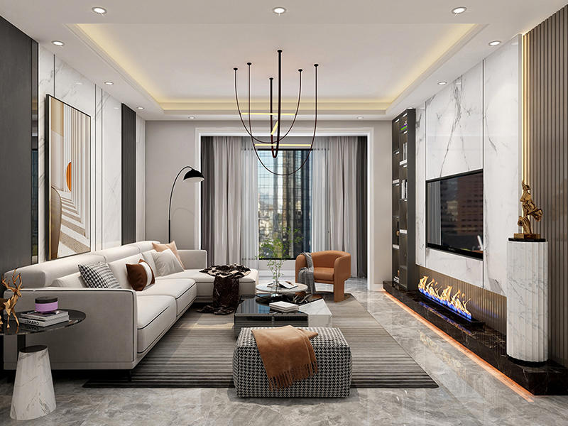 本案例风格定位于现代风,带给人庄重与优雅的双重感受,融入精致轻奢元素,提升空间精致感。