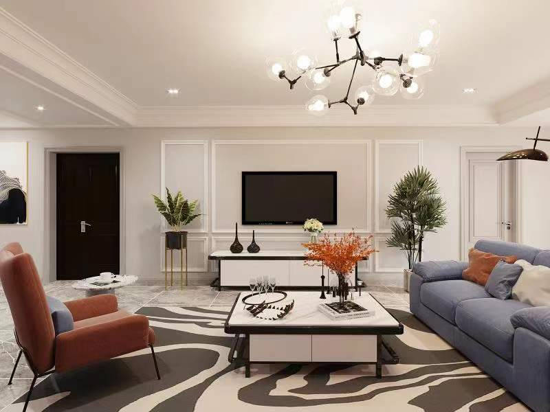 本案以美式风格为设计基调,摒弃传统家居的繁复与不实用,融入简约风的设计理念,并将鲜明色彩和石膏线条巧妙结合,营造优雅惬意的居室氛围。