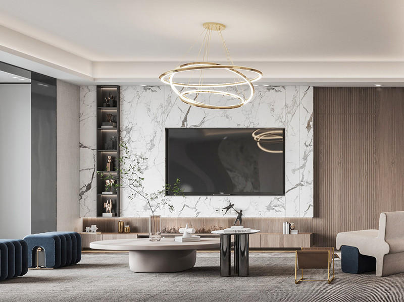 本案例风格定位于现代简约风,通过巧妙的色彩搭配,呈现出时尚的生活空间,整体视觉更大气,富有文化韵味。