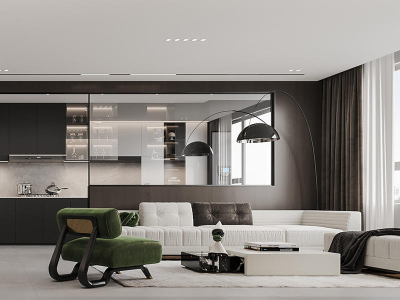 本案定位于现代轻奢风格,摒弃过度的奢华外表,注重空间的实用性能,也注重软装等的细节,用简单色彩营造出高雅舒适家居。