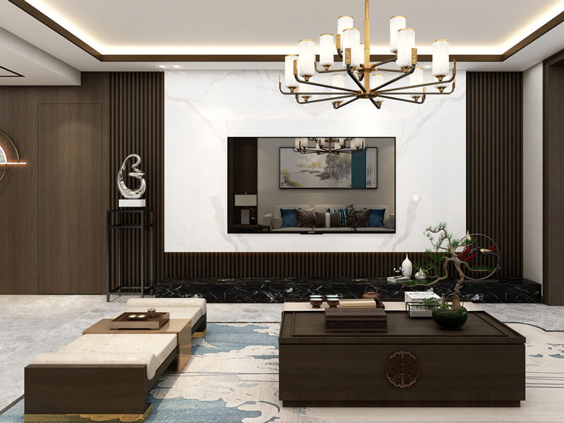 本案的硬装设计和软装搭配等,以中式风格为设计基调,并结合现代时尚元素,打造新中式家居,呈现出符合现代审美的中式魅力。