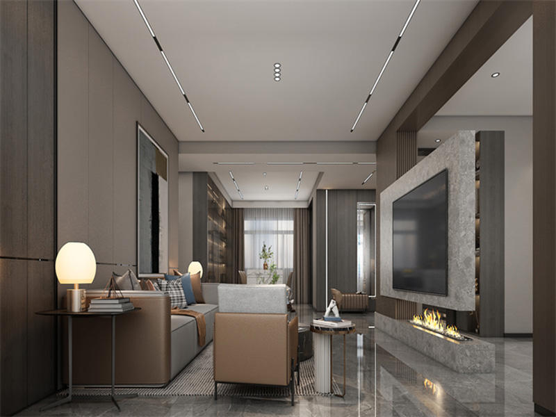 本案以现代风格为设计基调,巧用不同装饰材料呈现出的自然质感,并结合光影艺术和绿植等的点缀,营造空间的时尚雅致氛围。