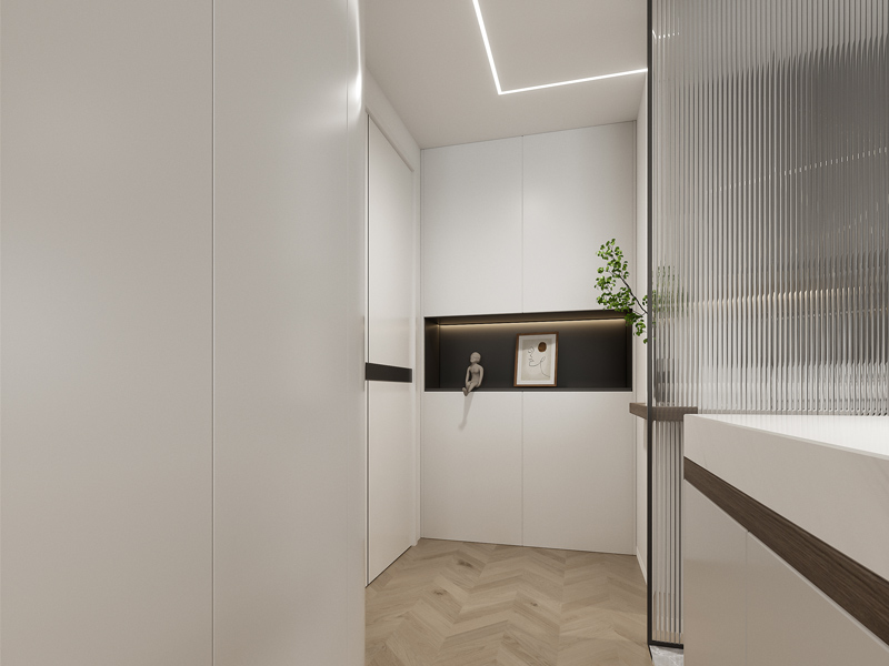 本案例风格定位于现代简约风,避免繁杂的设计,更加简洁清爽的赋予空间纯粹氛围,增添层次感。