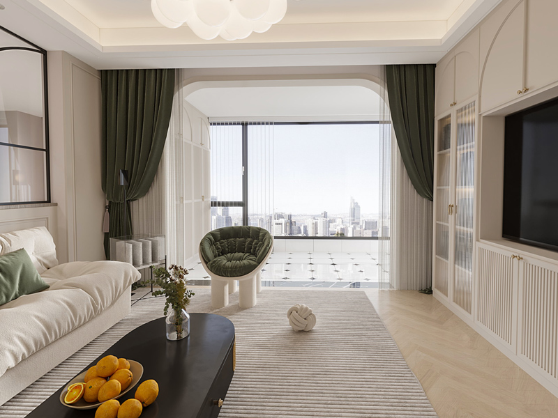 本案例风格定位于简约奶油风,整体色调选择十分简洁纯粹,营造出惬意梦幻的居家氛围,温柔舒适。