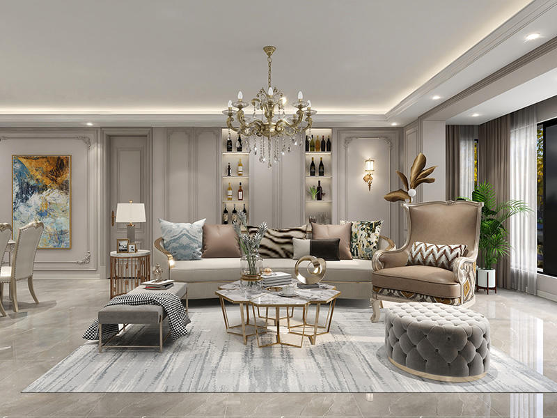 摒弃传统法式家居的繁复与不实用,保留法式的浪漫优雅,并与现代简洁时尚相结合,并融入轻奢风的装饰元素做点缀,呈现法式轻奢风格的家居生活。