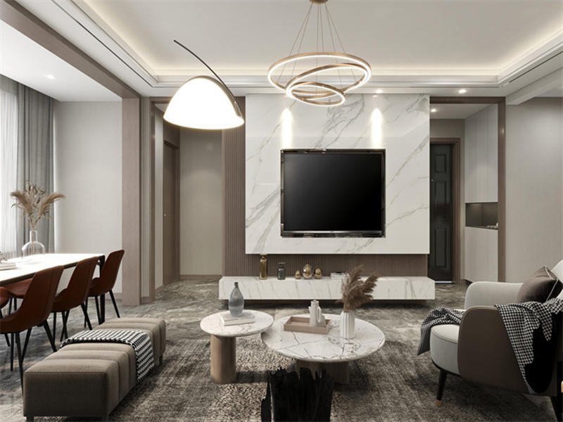 注重对空间功能性的呈现,也追求品质生活。本案定位于现代风格,以灰色调为空间色彩基调,搭配简洁风的装饰元素,结合无主灯设计等,打造优雅时尚家居。