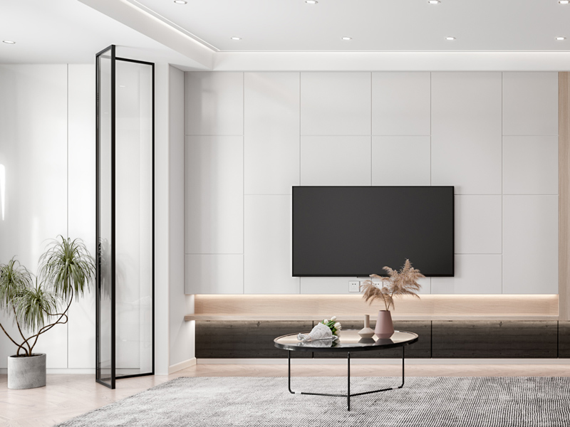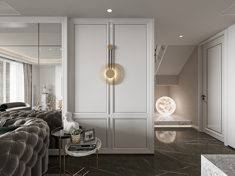 本案例设计主要遵循简约通透的原则,规避繁杂的装饰,全屋收纳都采用隐藏式无拉手设计,促使空间通透简洁感的效果呈现。
