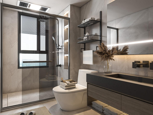 卫浴五金要买好的,马桶和开关面板要买好的,灯买简单亮堂的。