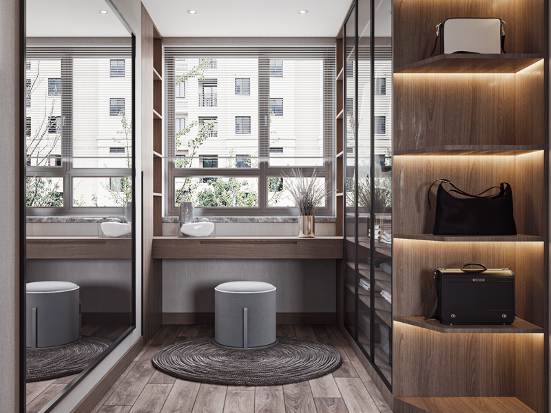 化妆是女孩子出门前的主要步骤之一,梳妆台也是每个女孩子都想要拥有的,但是如果无奈空间太小没法设计一个梳妆台,那么卫生间的洗手台也是可以满足化妆的需求的,而且还会更加实用,不用为了打湿美妆蛋而屋里屋外来回跑。