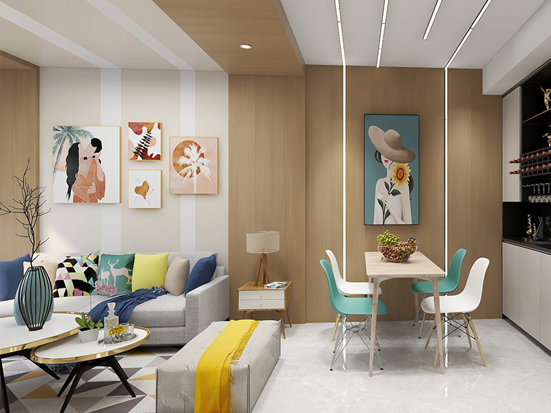 北欧风的设计意义在于简约,简洁流畅的线条中带着优雅的气质,以木纹原色为主,加上少量靓丽的色彩为辅助,给略显单调的空间增加了灵动的色调。