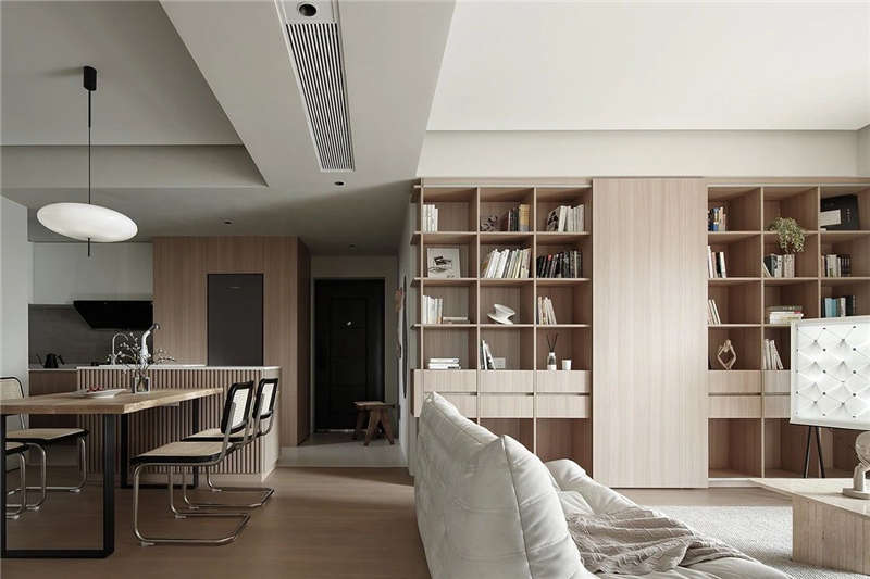 本案为114㎡的现代简约两居室,屋主是一位开朗大方、热爱生活的独居女性,对房屋的要求是有设计感的同时又很实用。
