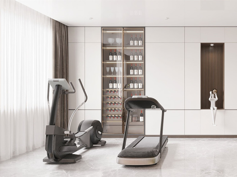 健身区:阳台作为家里的边缘,是不常光顾的区域,正适合需要放开手脚的健身行为,如果在其他区域难免会碍到家人手脚,而阳台不光面积够用还有很大的视野优势和通风优势。跑步机或者椭圆仪做有氧运动时,阳台窗透气可以交换氧气以及为人体散热。做无氧运动时需要的瑜伽垫和哑铃在阳台都有充分的面积可以摆放,平时哑铃一般放在角落以免碍事,阳台也比较便于收纳。